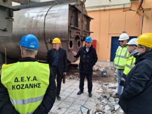 Τις εγκαταστάσεις της Τηλεθέρμανσης Κοζάνης στην περιοχή του Κασλά επισκέφθηκε το μεσημέρι της Δευτέρας 23 Μαρτίου 2026 ο Δήμαρχος Κοζάνης Γιάννης Κοκκαλιάρης, συνοδευόμενος από τον Πρόεδρο της ΔΕΥΑΚ Παναγιώτη Ματιάκη, τον Γενικό Διευθυντή της ΔΕΥΑΚ Βασίλη Πανούση και υπηρεσιακά στελέχη της Επιχείρησης, παρακολουθώντας από κοντά τις εργασίες αντικατάστασης των παλαιών ανενεργών λεβήτων με νέους, στους χώρους της Δημοτικής Επιχείρησης Ύδρευσης και Αποχέτευσης Κοζάνης.
